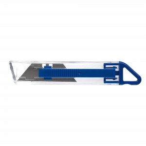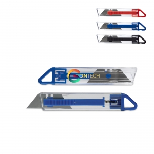 Artikel-Nr: ART90727N0021Transparentes Cuttermesser mit farbigen Gehäuselementen. Inkl. einer Öse zur Befestigung eines Bandes.