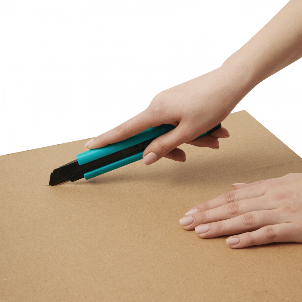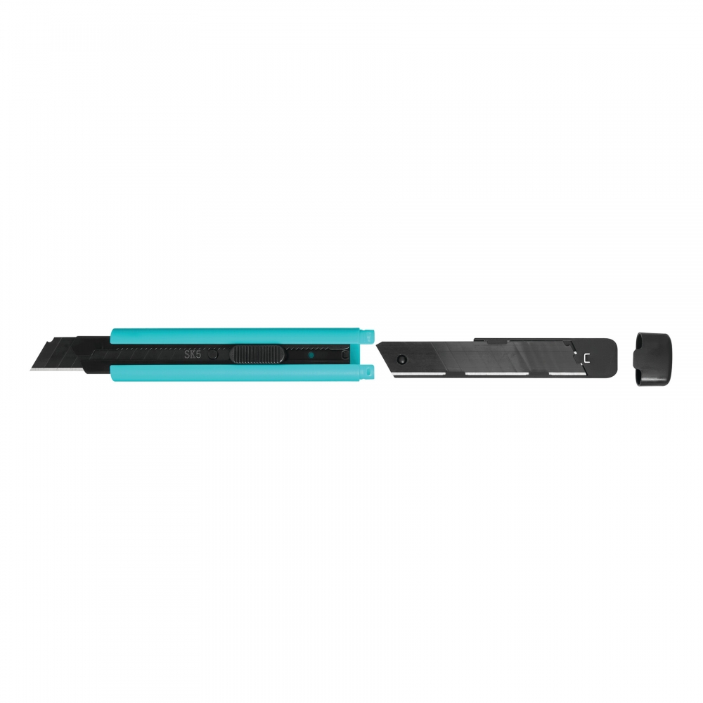 Artikel-Nr: INP56-0399038Cuttermesser RELIABLE: mit beweglicher, schwarzer 18 mm Abbrechklinge (10 Klingenabschnitte und Ersatzklinge), Klingenvorschub mit Gleiter und Auto-Stopp, Kunststoffgehäuse, Klingenführung aus Stahl, für leichte bis schwere Schneidearbeiten, in Box