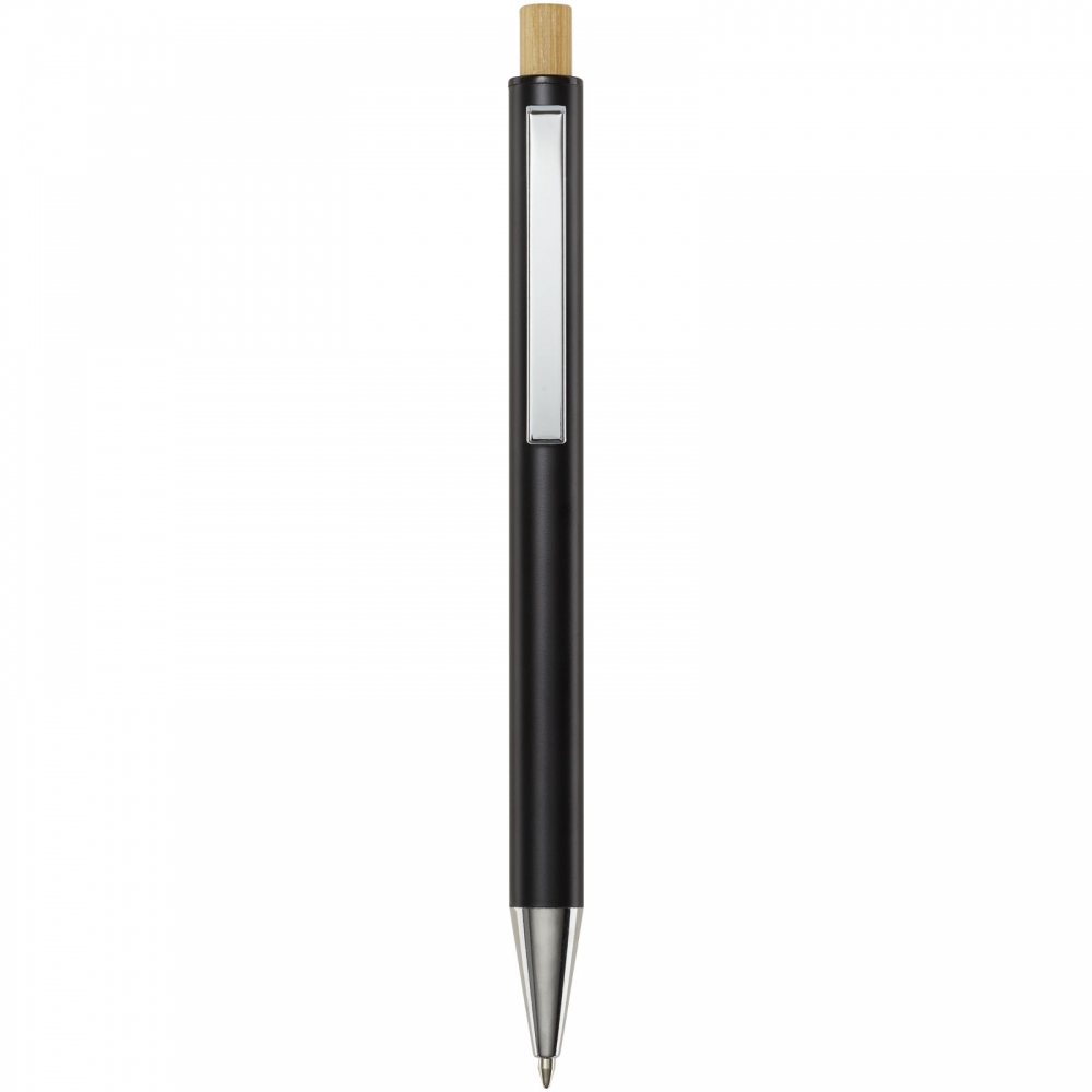 Artikel-Nr: CPO10787490Der Cyrus Kugelschreiber ist aus recyceltem Aluminium hergestellt, was weniger Energie benötigt als die Herstellung von Aluminium aus Rohstoffen. Es reduziert außerdem die Abfallmenge auf Mülldeponien und trägt dazu bei, natürliche Ressourcen zu schonen und Treibhausgasemissionen zu reduzieren. Druckknopf ist aus Bambus gefertigt. Tintenfarbe: Blau. Schreiblänge: 800 Meter. Spitzengröße: 1,00 mm.