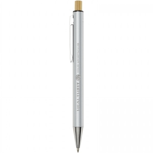 Artikel-Nr: CPO10787581Der Cyrus Kugelschreiber ist aus recyceltem Aluminium hergestellt, was weniger Energie benötigt als die Herstellung von Aluminium aus Rohstoffen. Es reduziert außerdem die Abfallmenge auf Mülldeponien und trägt dazu bei, natürliche Ressourcen zu schonen und Treibhausgasemissionen zu reduzieren. Druckknopf ist aus Bambus gefertigt. Tintenfarbe: Schwarz. Schreiblänge: 800 Meter. Spitzengröße: 1,00 mm.