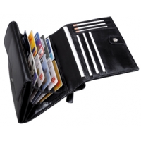 Artikel-Nr: 76942139Damengeldbörse Reißverschlussfach auf der Rückseite, Druckknopfverschluss, Münzfach, Scheinfach, Kreditkartenfächerfach für zehn Kreditkarten, weitere sechs Kreditkartenfächer, zwei Einschubfächer