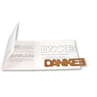 Artikel-Nr: 449006038Mit dieser Weihnachtskarte können sie ganz einfach 'Danke', z. B. für die harmonische Zusammenarbeit, sagen. Das Holzlesezeichen kann nachhaltig genutzt werden und ist so immer wieder präsent. Eigene Schriftzüge sind nach Vorlage ab 250 Stück möglich. Ein Kuvert ist separat erhältlich Art. 6101 oder 6104. Platz für den Werbedruck ist auf dem Standardmotiv der Karte oder eine eigene Gestaltung, jeweils ab 250 Stück.