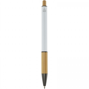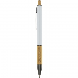 Artikel-Nr: CPO10787601Der Darius Kugelschreiber wird aus recyceltem Aluminium hergestellt, was weniger Energie benötigt als die Herstellung von Aluminium aus Rohstoffen. Es reduziert außerdem die Abfallmenge auf Mülldeponien und trägt dazu bei, natürliche Ressourcen zu schonen und Treibhausgasemissionen zu reduzieren. Der Druckknopf und der untere Teil des Schafts sind aus Bambus gefertigt. Tintenfarbe: Blau. Schreiblänge: 800 Meter. Spitzengröße: 1,00 mm.