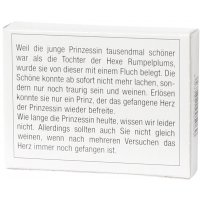 Mit einem Fluch belegt, kann eine Prinzessin nur wieder glücklich werden, wenn ein Prinz ihr gefangenes Herz befreit. Erbarmen Sie sich? Zwei Teile. Achtung! Nicht geeignet für Kinder unter 36 Monaten.
