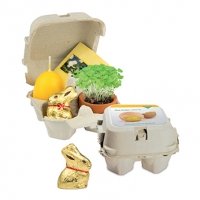 Artikel-Nr: 4011241091Im Eierkarton befinden sich ein Tontöpfchen mit Samen des Zier-Eierbaums und eine gelbe Ostereier-Kerze. Mit dem kleinen Lindt-Schokohasen ist die Eierbox komplett. Der Werbeaufkleber bietet ausreichend Freiraum für Ihre Werbebotschaft. Größe: 11 x 11 x 8 cm