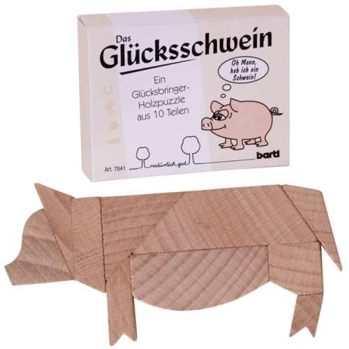 Artikel-Nr: 375107841Zehn Teile. Originelle Geschenkidee für jeden Anlass! Das Holzpuzzle verheißt dem Beschenkten das große Glück und jede Menge Puzzlespaß dazu. Auf der Rückseite der Schachtel steht allerhand Wissenswertes und Lustiges zum Glücksbringer. Achtung! Nicht geeignet für Kinder unter 36 Monaten.