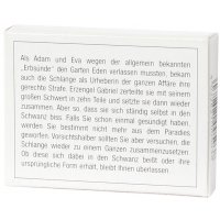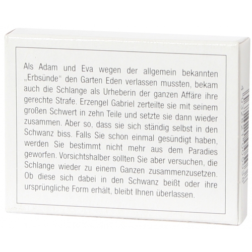 Artikel-Nr: 375102752Dass der Erzengel Gabriel die Schlange wegen des Sündenfalls zerlegte, ist ein Gerücht. Aber, dass Sie das Tier aus zehn Teilen wieder zusammenbauen müssen, ist Tatsache! Achtung! Nicht geeignet für Kinder unter 36 Monaten.