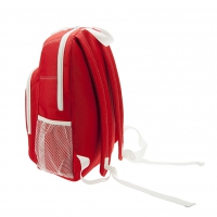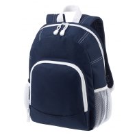 Hauptfach mit 2-Wege-Reißverschluss mit hängenden Organizer, Reißverschluss-Vortasche, seitliche Netzfächer, Rücken und Schultergurte gepolstert, Handgriff