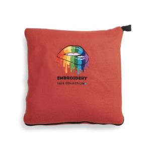 Warme Fleecedecke aus Polyester. Die Decke lässt sich problemlos in ein bequemes Kissen verwandeln – dazu muss diese nur gefaltet und einem Reißverschluss geschlossen werden. Dieses funktionale Gadget ist unerlässlicher Bestandteil jeder Reise. Nach dem Auseinanderfalten ist diese Decke 178 x 120 cm groß. Produkt lässt sich mittels Sticken veredeln - individuelle Berechnung.