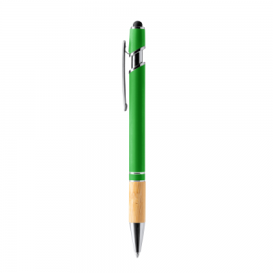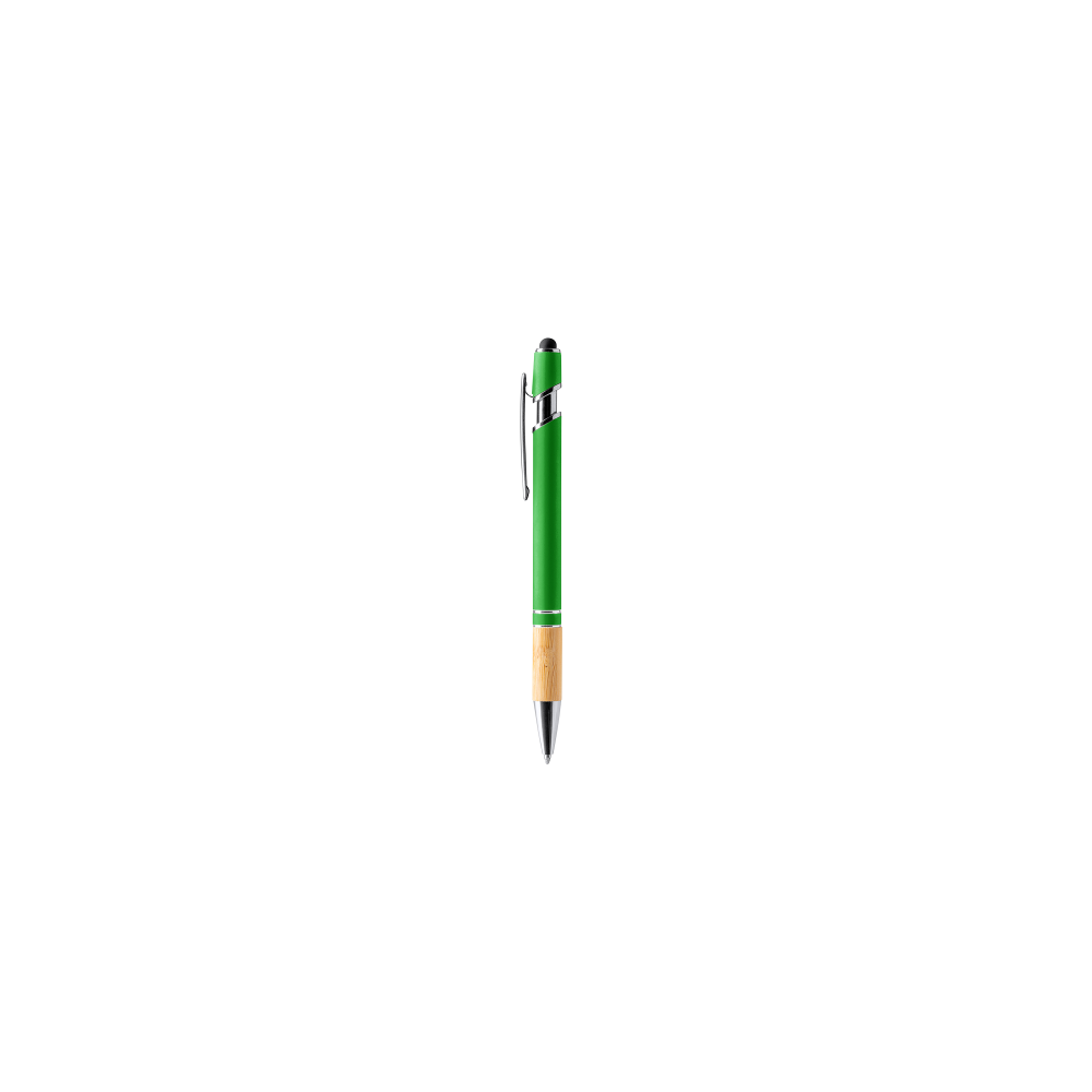 Artikel-Nr: PRM126104_04Stilvoller und nachhaltiger Metallstift met Bambusgriff en Stylus, ausgestattet met hochwertiger blauer Tinte.