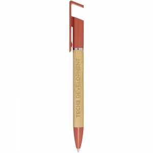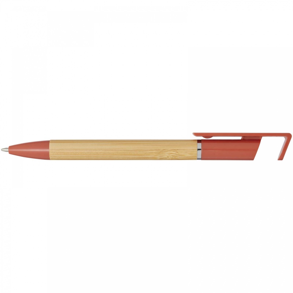 Artikel-Nr: CPO10789932Bamboo-Kugelschreiber, der auch als Telefonhalterung fungiert. Der Knopf und der Mittelring bestehen aus recyceltem Kunststoff, die Spitze aus Messing und der Schaft aus nachhaltig angebautem Bambus. Tintenfarbe: Blau. Schreiblänge: 1000 Meter. Strichstärke: 1,0 mm.
