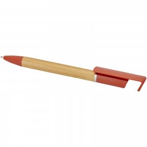 Artikel-Nr: CPO10789832Bamboo-Kugelschreiber, der auch als Telefonhalterung fungiert. Der Knopf und der Mittelring bestehen aus recyceltem Kunststoff, die Spitze aus Messing und der Schaft aus nachhaltig angebautem Bambus. Tintenfarbe: Schwarz. Schreiblänge: 1000 Meter. Strichstärke: 1,0 mm.