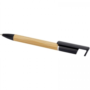 Artikel-Nr: CPO10789890Bamboo-Kugelschreiber, der auch als Telefonhalterung fungiert. Der Knopf und der Mittelring bestehen aus recyceltem Kunststoff, die Spitze aus Messing und der Schaft aus nachhaltig angebautem Bambus. Tintenfarbe: Schwarz. Schreiblänge: 1000 Meter. Strichstärke: 1,0 mm.