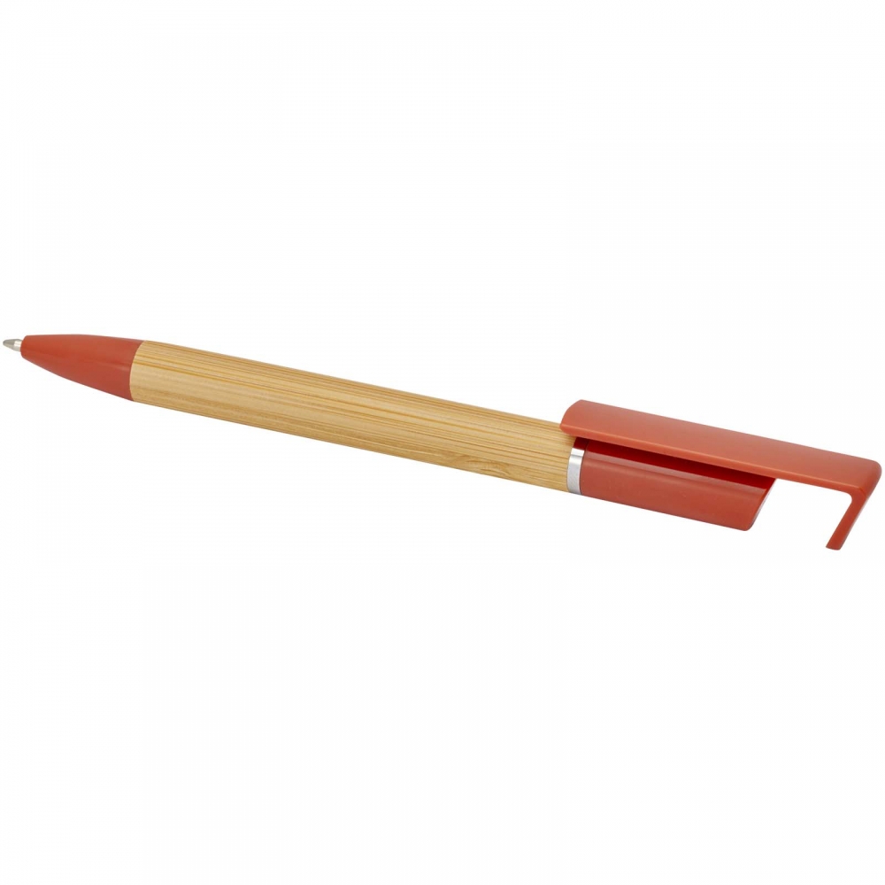 Artikel-Nr: CPO10789832Bamboo-Kugelschreiber, der auch als Telefonhalterung fungiert. Der Knopf und der Mittelring bestehen aus recyceltem Kunststoff, die Spitze aus Messing und der Schaft aus nachhaltig angebautem Bambus. Tintenfarbe: Schwarz. Schreiblänge: 1000 Meter. Strichstärke: 1,0 mm.