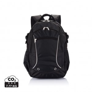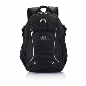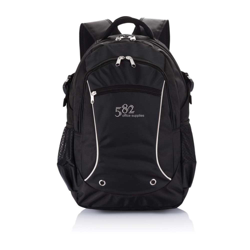 Artikel-Nr: XND705021Laptoprucksack, 1680D und Jacquard, Hauptfach mit Reißverschluss und wattiertem 15,6’’ Laptopfach, Frontfach mit Organizer, 2 Netztaschen seitlich, reflektierende Nähte.