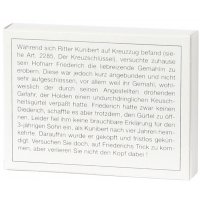 Artikel-Nr: 375102052Ritter Kunibert verließ seine Gemahlin nie, ohne sie mit einem Keuschheitsgürtel zu bekleiden. Was die Königin in der vierjährigen Trennung tat, weiß nur der Hofnarr und ihr dreijähriger Sohn. Achtung! Nicht geeignet für Kinder unter 36 Monaten.