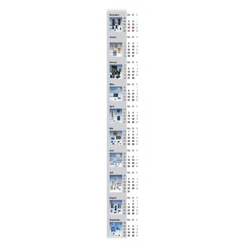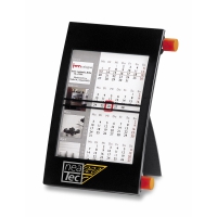 Artikel-Nr: 3335003Tischkalender für 2 Jahre mit patentierter Drehmechanik im Kunststoffgehäuse im bedruckten Faltkarton, individuell gestaltbares Kalendarium