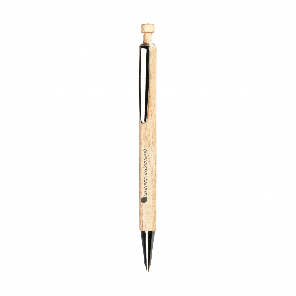 Artikel-Nr: CLP432644WoW! Blauschreibender Kugelschreiber aus massivem Birkenholz mit verchromtem Clip und Spitze und hölzernem Druckknopf.