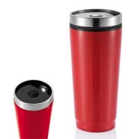 Artikel-Nr: W460P4324240,3l Becher aus Edelstahl in rot, mit einzigartigem Push-Knopf zum dichten Verschließen des Deckels, geeignet zur einhändigen Bedienung, geschütztes Design. Farbe/n: rot. Maße: 18 - Ø 7,7 mm.