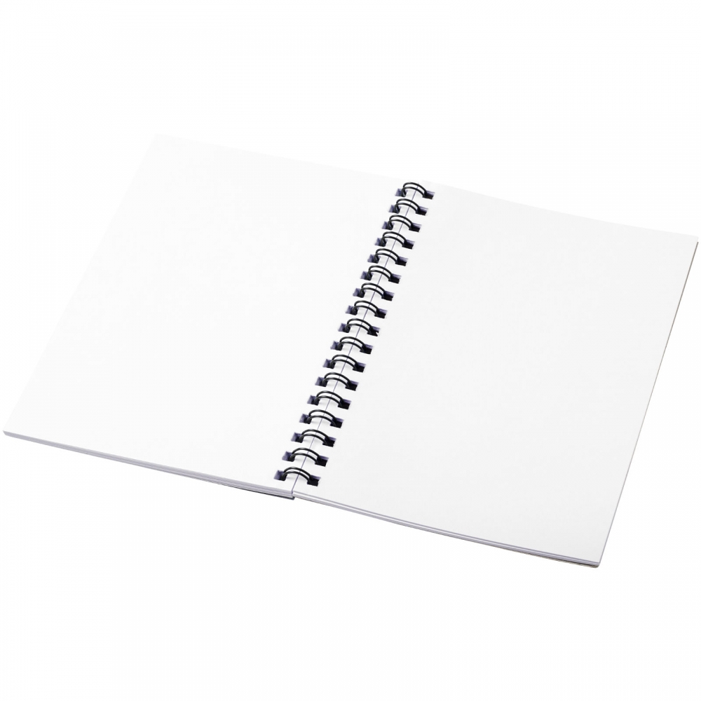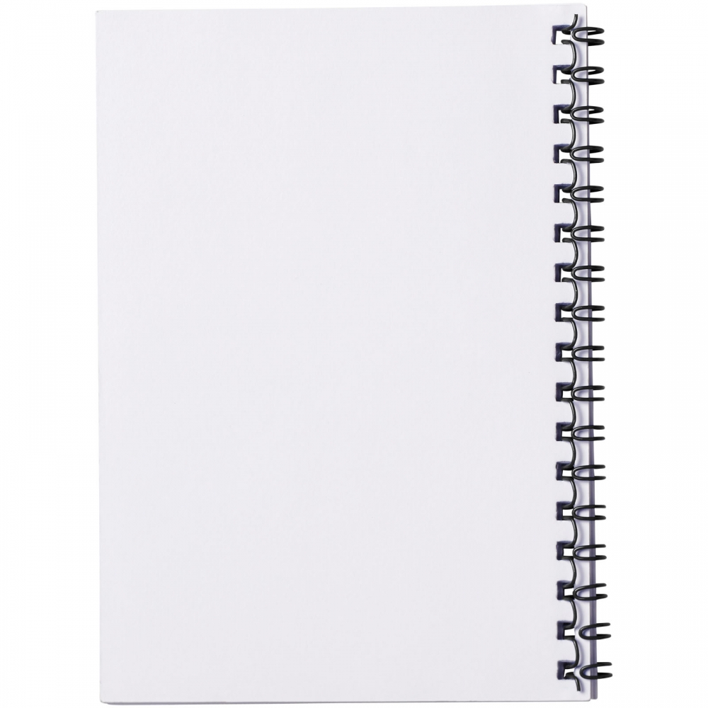Artikel-Nr: CPO21248012Desk-Mate® A6 Spiralnotizbuch. Enthält 50 Blatt 80g / m2-Blankopapier, ein glänzendes Karton-Deckblatt (250g / m2) und einen transparenten Polypropylenumschlag von 450 Mikron. Schwarze oder weiße Spiralbindung. Auch erhältlich mit 100 Blatt. Sie können die Seiten dieses praktischen Notizbuchs mit jedem beliebigen Design gestalten - ob liniertes, kariertes oder gepunktetes Papier - alles ist möglich!