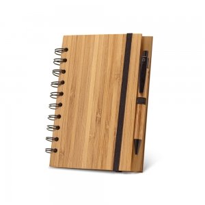 Artikel-Nr: PST93485-160Notizblock A5 aus Bambus mit 140 100% recycelten elfenbeinfarbigem (70/m²) und linierten Seiten, Gummiband und Kugelschreiberhalter, inklusive Kugelschreiber. Kugelschreiber aus Bambus mit blauer Schrift. Da das Produkt aus natürlichen Materialien hergestellt wird, können Farbe des Produkts sowie das Druckergebnis von Produkt zu Produkt unterschiedlich sein. 135 x 180 mm