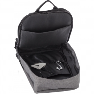 Artikel-Nr: GIV8552001Diebstahlsicherer Rucksack 'Birmingham' aus PVC (600D/300D) mit verstellbaren und gepolsterten Schultergurten, gepolstertem Rückenteil, gepolstertem Laptopfach (ca. 38cm), großem RV-Hauptfach, USB-Anschluss an der Außenseite (innen mit Kabel und USB-Anschluss).