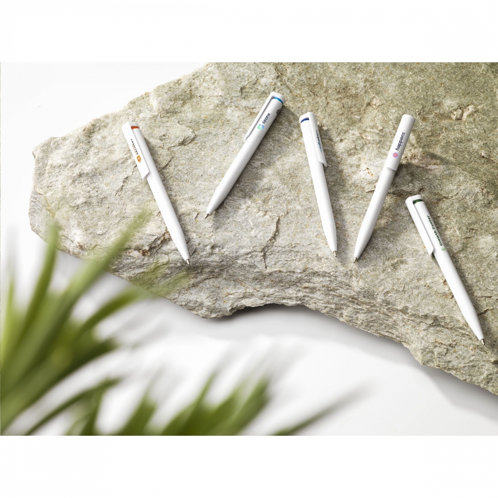 Artikel-Nr: CLP10197020Blauschreibender Kugelschreiber mit einem Gehäuse aus 100% recyceltem ABS. Der Clip / Druckknopf ist mit einem auffälligen farblichen Akzent gestaltet und bietet Platz für einen großzügigen, digitalen Vollfarbaufdruck. GRS-zertifiziert.