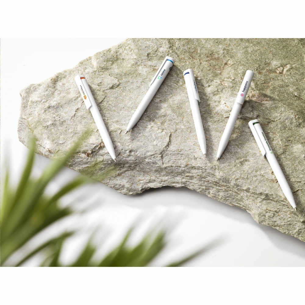 Artikel-Nr: CLP261019-044128Blauschreibender Kugelschreiber mit einem Gehäuse aus 100% recyceltem ABS. Der Clip / Druckknopf ist mit einem auffälligen farblichen Akzent gestaltet und bietet Platz für einen großzügigen, digitalen Vollfarbaufdruck. GRS-zertifiziert.