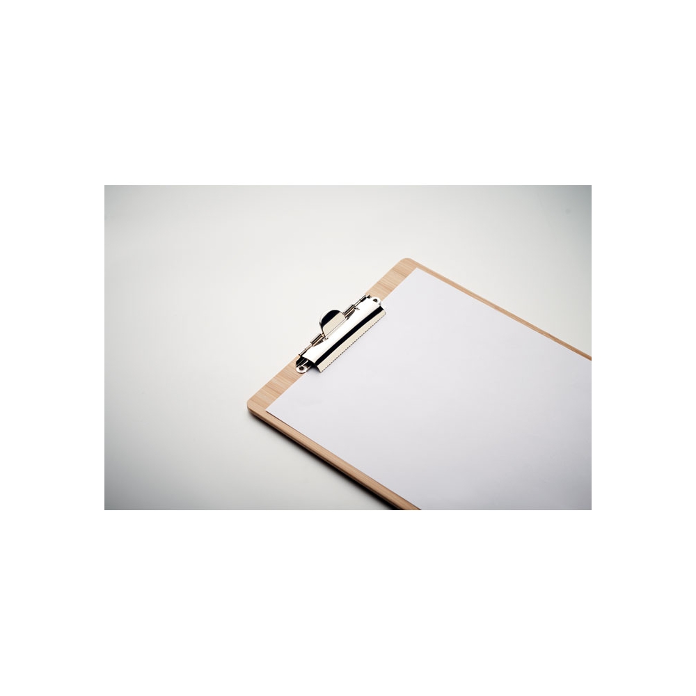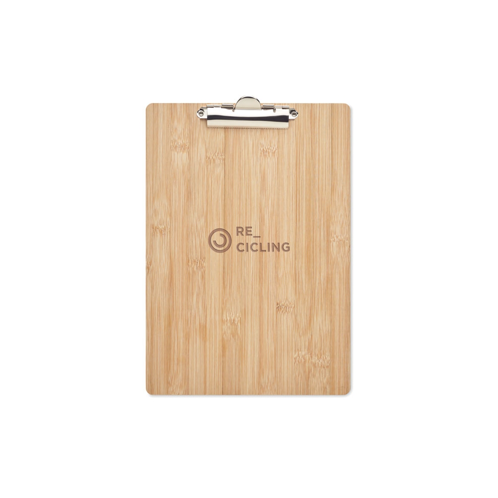 Artikel-Nr: OCBMO6535-40DIN A4 Klemmbrett aus Bambus. Mit diesem nützlichen Büroutensil behalten Sie den Überblick über Ihre Arbeit und haben alle Unterlagen beisammen. Das Bambusmaterial verleiht dem Klemmbrett ein natürliches Aussehen und macht es zu einer viel besseren Alternative als die üblichen Bretter aus Kunststoff. Da es sich bei Bambus um ein Naturprodukt handelt, kann es zu leichten Farb- und Größenabweichungen kommen, die das Endergebnis der Dekoration beeinflussen können. FSC®-certified | FSC 100%, N5.7, FSC-C213206