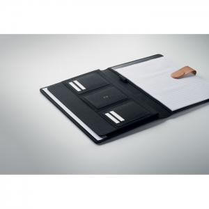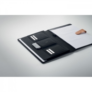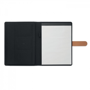 Artikel-Nr: OCBMO2361-03DIN A4 Mappe aus RPET mit Details aus Kunstleder. Auswechselbares A4- Notizbuch mit gebundenem Hard Cover. 15 Blatt (30 Seiten) liniertes Recyclingpapier. Stifthalter, 4 Kartenfächer, 3 kleine und ein großes Fach. Magnetischer Verschluss. FSC®-certified | FSC MIX , P8.6, FSC-C213206