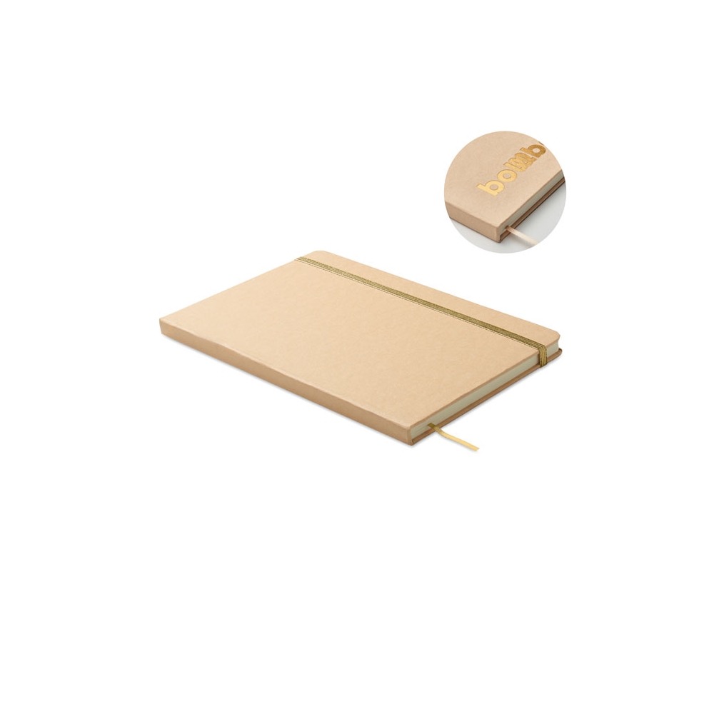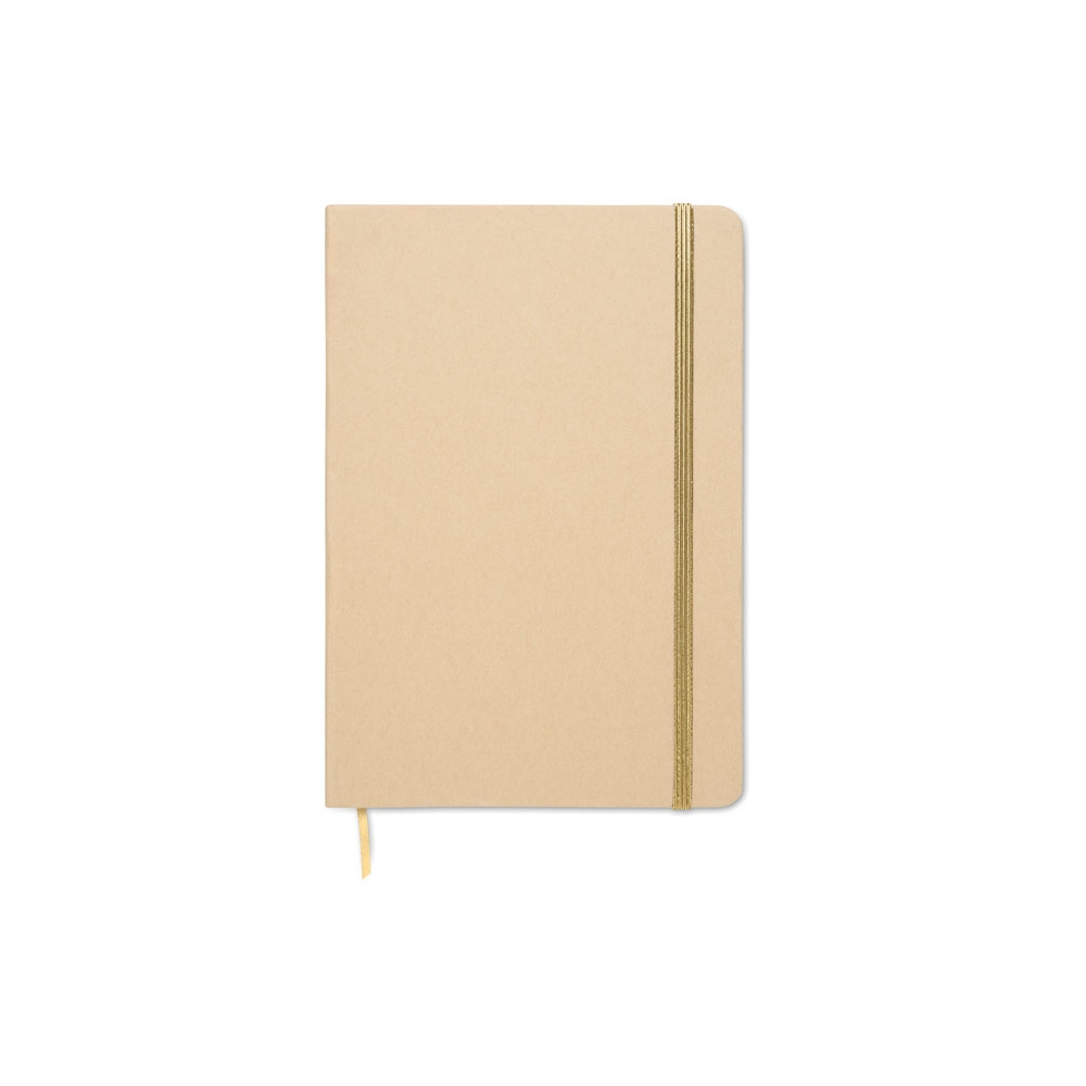 Artikel-Nr: OCBMO2580-98DIN A5 Notizbuch mit gebundenem Hard Cover aus recyceltem Karton. Beiges Cover. 80 Blatt (160 Seiten) liniertes Recyclingpapier. Nach der Gravur des Covers, wird die Farbe sichtbar. Farblich abgestimmtes elastisches Verschlussband und Lesebändchen. FSC®-certified | FSC MIX CREDIT, P7.1, FSC-C213206