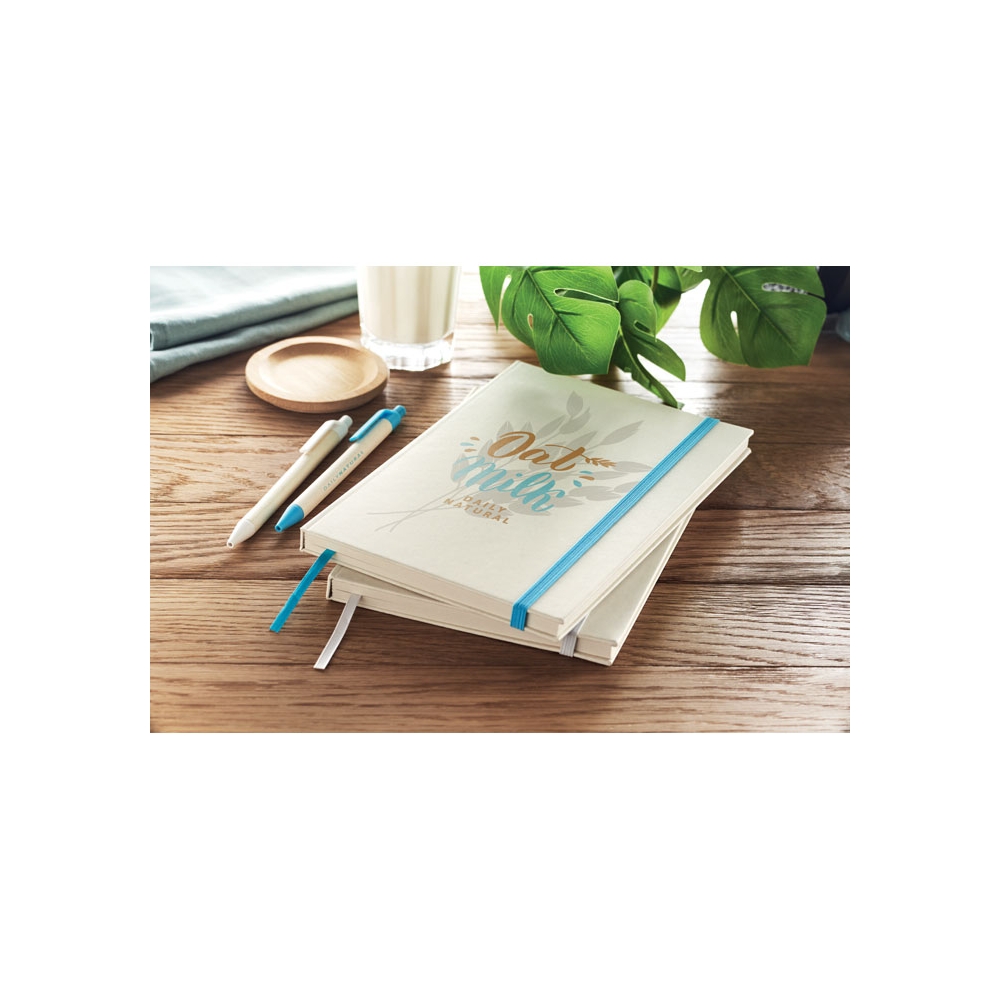 Artikel-Nr: OCBMO6743-12DIN A5 Notizbuch mit Hard Cover aus 70% recyceltem Milchkarton und 30% recyceltem Papier. 80 Blatt (160 Seiten) liniertes Recyclingpapier 80 g / m². Gebunden. Elastisches Verschlussband und Lesebändchen.