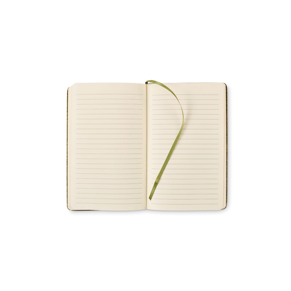 Artikel-Nr: OCBMO2603-09DIN A5 Notizbuch mit gebundenem Hard Cover aus 20% Teesatz, 30% Kork und 50% Polycotton-Gewebe. 80 Blatt (160 Seiten) aus liniertem 70 g / m² Recyclingpapier. Passendes elastisches Verschlussband und Lesebändchen. FSC®-certified | FSC MIX CREDIT, N7.1, FSC-C213206