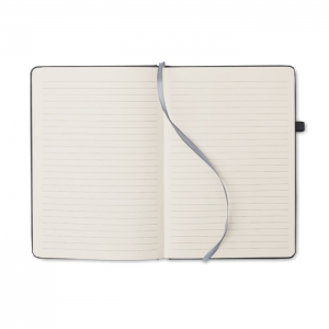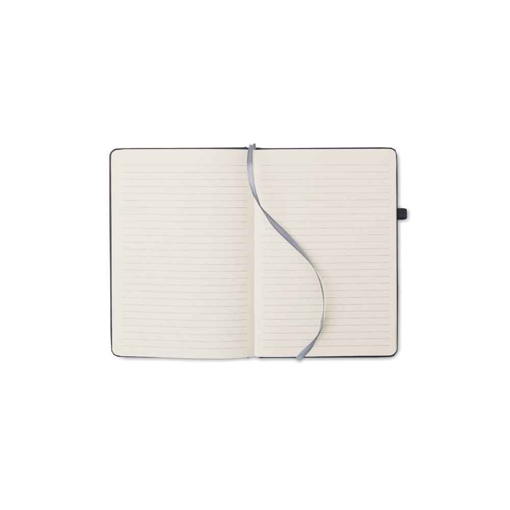 Artikel-Nr: OCBMO6220-03DIN A5 Notizbuch mit Hardcover aus 70% recyceltem Pre-Consumer-Leder und 30% PU-Latex. 80 Blatt (160 Seiten) liniertes Recyclingpapier. Mit farblich passendem elastischen Verschlussband und Stiftschlaufe .