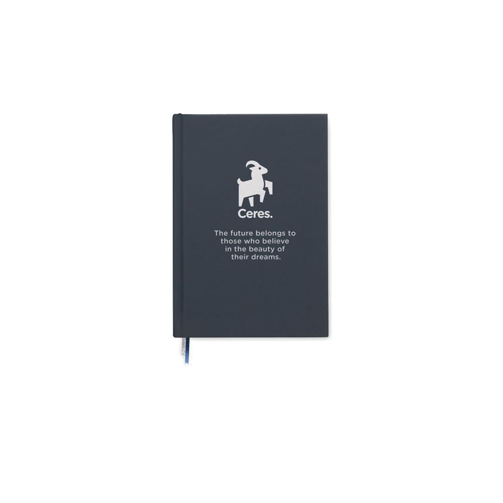 Artikel-Nr: OCBMO2718-85DIN A5 Notizbuch mit gebundenem Cover aus 60% recyceltem Polyester und 40% PU. 128 Blatt (256 Seiten) liniertes 70 g / m² Recyclingpapier. Mit 2 Lesebändchen.