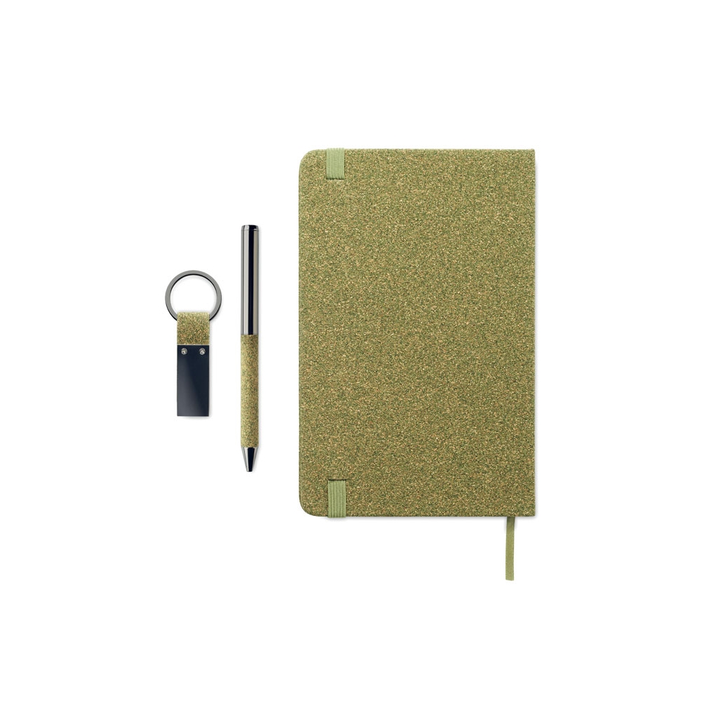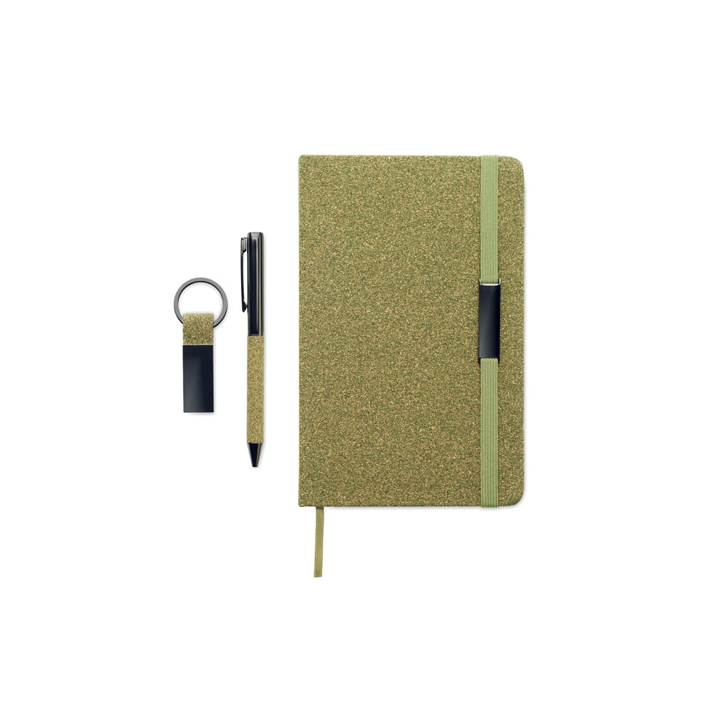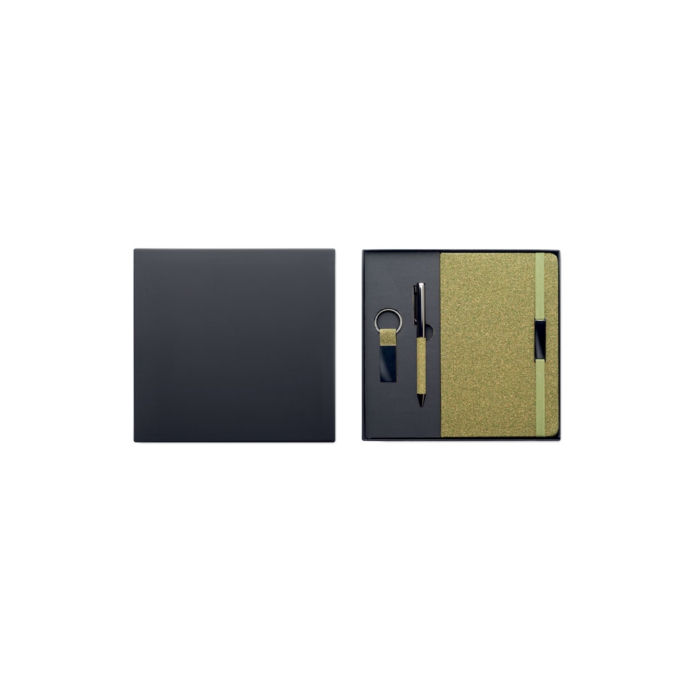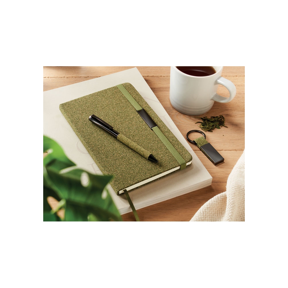 Artikel-Nr: OCBMO2633-093-teiliges Set: DIN A5 Notizbuch mit Hard Cover. 80 Blatt (160 Seiten) liniertes 70g / m² Recyclingpapier. Elastikbandverschluss. Kugelschreiber und Schlüsselring aus Metall. Dekor aus 20% Teesatz, 30% Kork, 50% Polycotton. FSC®-certified | FSC MIX CREDIT, N7.1, FSC-C213206