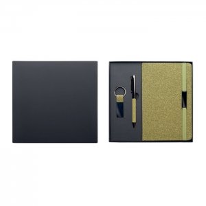 Artikel-Nr: OCBMO2633-093-teiliges Set: DIN A5 Notizbuch mit Hard Cover. 80 Blatt (160 Seiten) liniertes 70g / m² Recyclingpapier. Elastikbandverschluss. Kugelschreiber und Schlüsselring aus Metall. Dekor aus 20% Teesatz, 30% Kork, 50% Polycotton. FSC®-certified | FSC MIX CREDIT, N7.1, FSC-C213206
