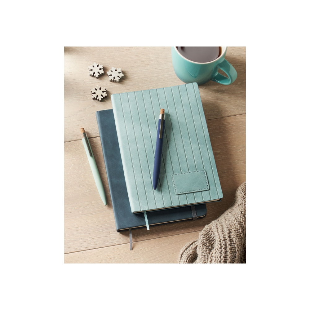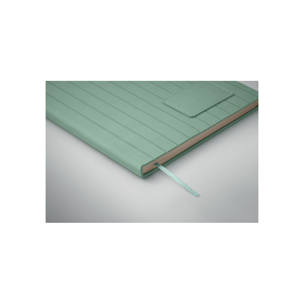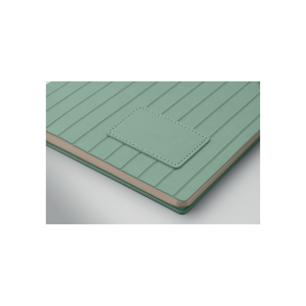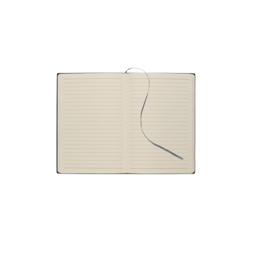Artikel-Nr: OCBMO2663-77DIN A5 Notizbuch mit geripptem Soft Cover aus 40% recyceltem Post Consumer Smokey PU und 60% PU mit PU Patch. 80 Blatt (160 Seiten) 70 g / m² Recyclingpapier. Farblich passendes Lesebändchen.