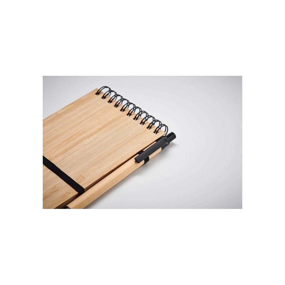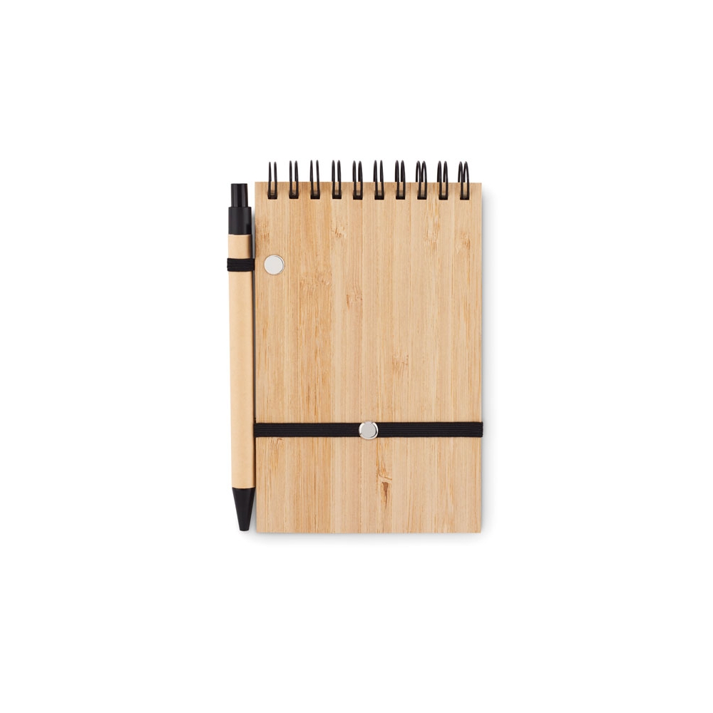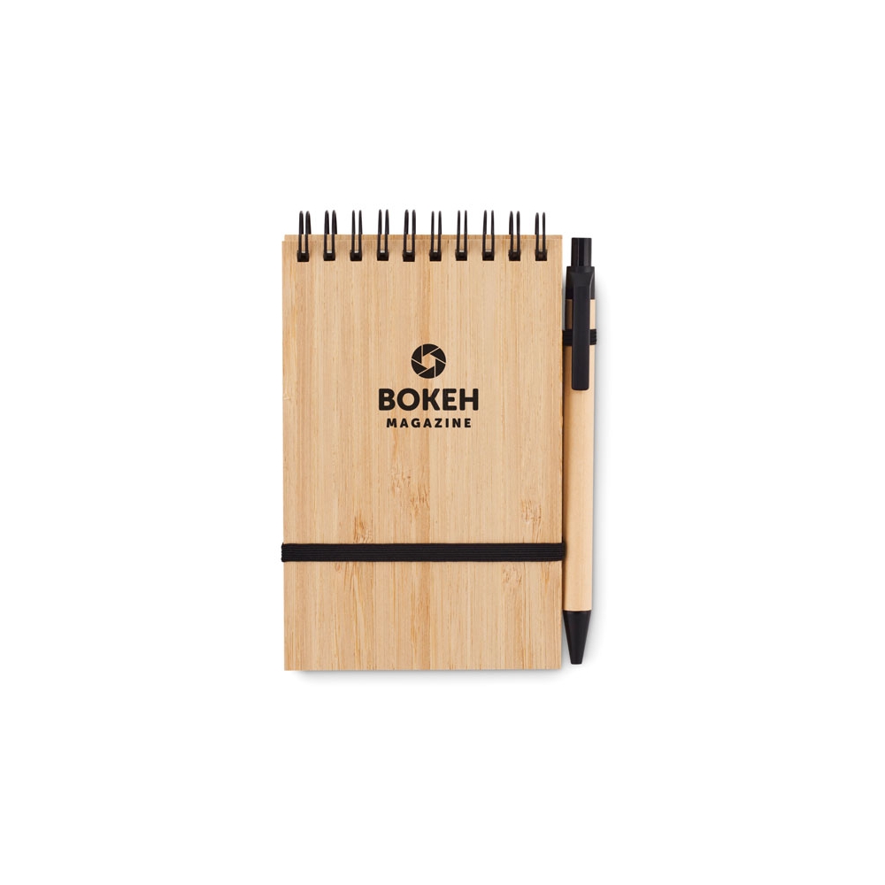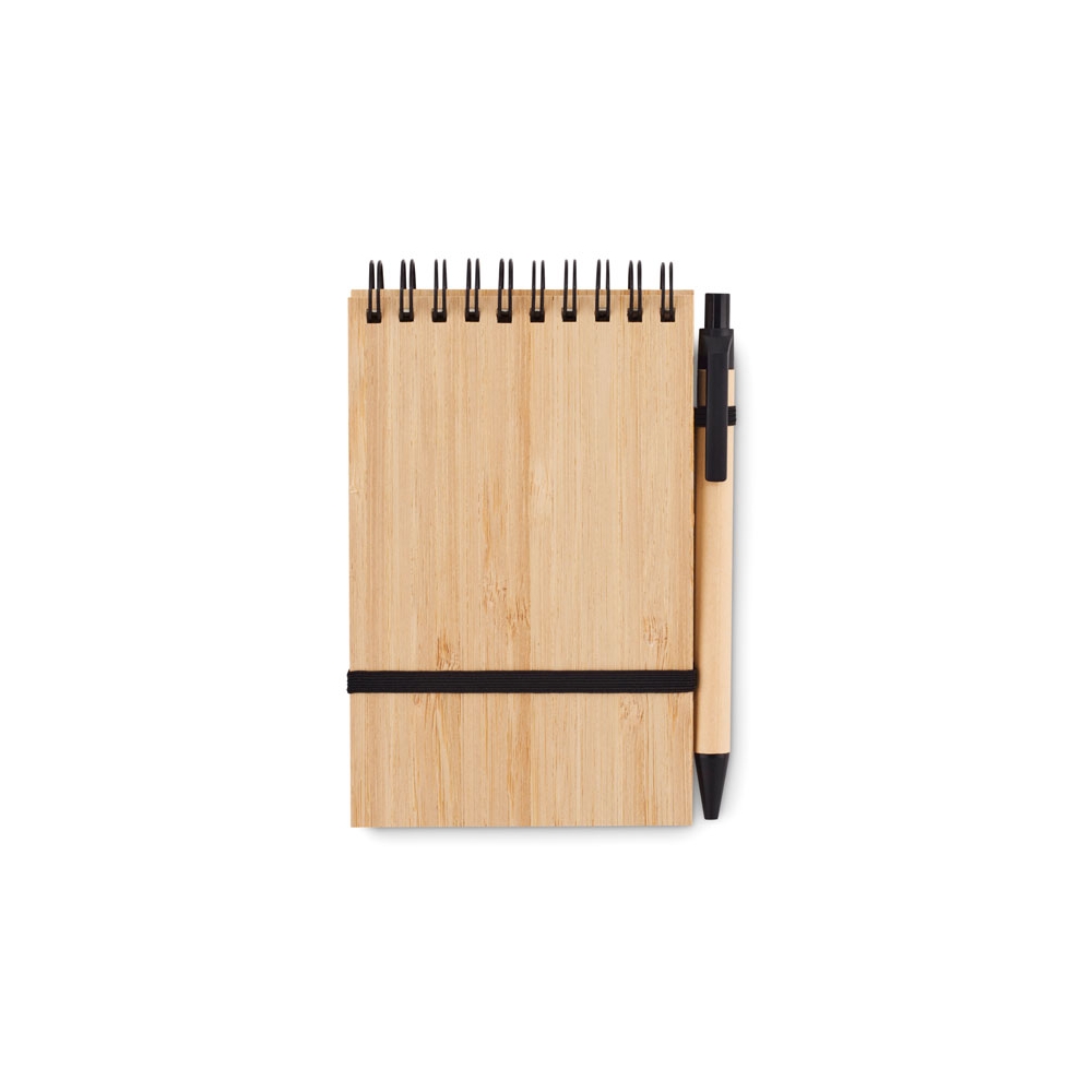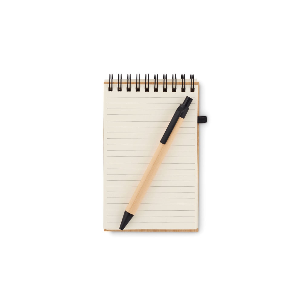 Artikel-Nr: OCBMO6528-03DIN A6 Notizblock mit einem Cover aus Bambus und 70 Blatt liniertem Recyclingpapier. Inklusive passendem Kugelschreiber aus recyceltem Papier mit PLA-Spitze und Clip. Mit diesem praktischen Büroartikel können Sie alles Wichtige während Ihrer Meetings notieren. Der Bambuseinband verleiht dem Block einen schönen natürlichen Touch. Sowohl der Kugelschreiber als auch das Papier sind aus Recycling-Papier hergestellt, was dieses Produkt zu einer nachhaltigen Wahl macht. Der Stift hat blaue Tinte. Da Bambus ein natürliches Material ist, können Farbton und Maße pro Artikel variieren. Dies kann zu Abweichungen im Ergebnis der Veredlung führen. FSC®-certified | FSC MIX, P7.7, FSC-C213206