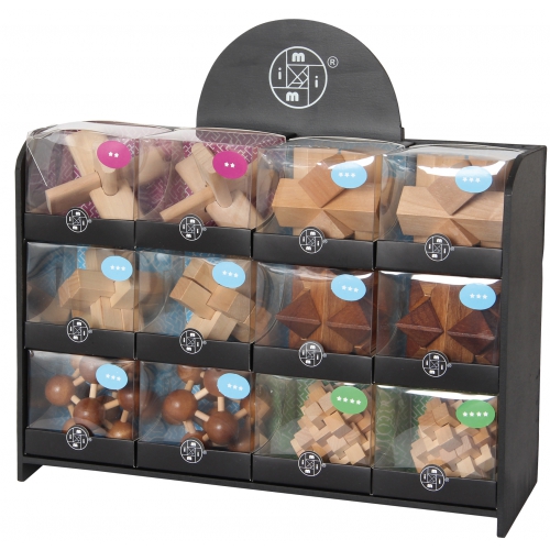 Inhalt: Zwölf Holzpuzzles in sechs Motiven im Holzdisplay. Puzzlegröße: 9 x 9 x 9 cm. Achtung! Nicht geeignet für Kinder unter 36 Monaten.