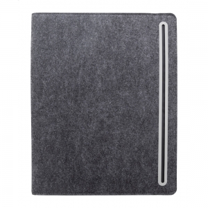 Artikel-Nr: AND808272-80Dokumentenmappe im A4-Format aus RPET-Filz mit einer Fronttasche und mehreren Organizerfächern innen. Enthält einen Notizblock mit 20 linierten Seiten aus recyceltem Papier.