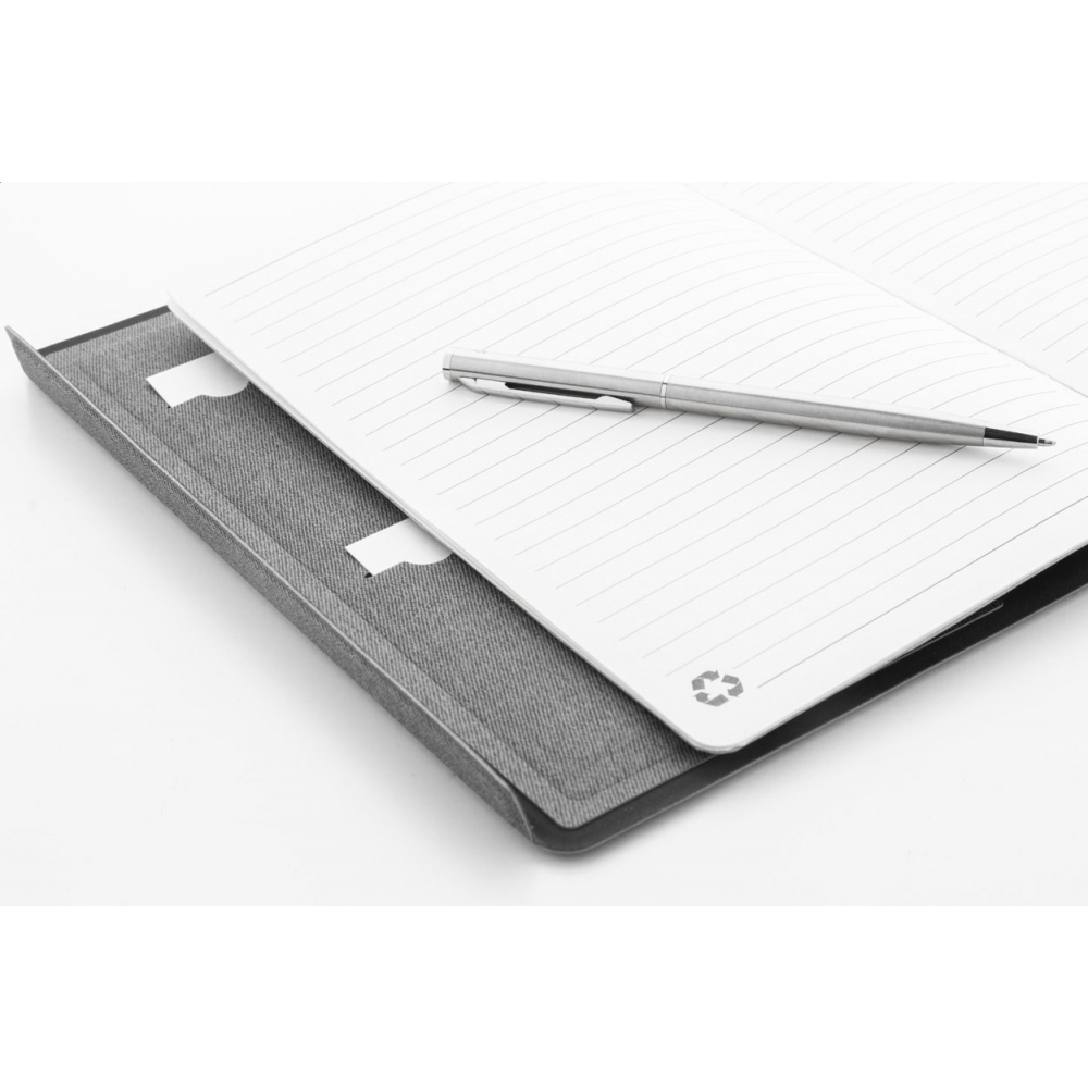 Artikel-Nr: AND808222-77Dokumentenmappe im A5-Format aus recyceltem Kunstleder mit Organizerfächern innen und Magnetverschluss. Enthält einen Notizblock mit 64 linierten Seiten aus recyceltem Papier.
