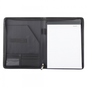 Artikel-Nr: AND809453A4 Dokumentenmappe mit Reißverschluss, Notizblock mit 20 Seiten (liniert), Stiftschlaufe und Visitenkartenfach. Material: Kunstleder.