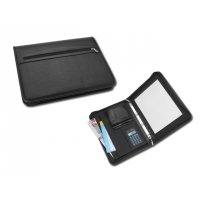 Artikel-Nr: 11262037-10Dokumentenmappe aus Kunstleder mit Ringmechanik, einem Notizbuch A4 (liniert, 30 Blätter) und einem Dual Power Taschenrechner mit achtstelligem Display, incl. Knopfbatterie.
