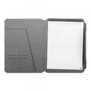Artikel-Nr: AND800176-77Dokumentenmappe im A4-Format aus RPET-Polyester mit Walnussholzdetails, mehreren Organizer-Innentaschen und Magnetverschluss. Inklusive Notizblock mit 20 linierten Seiten aus Recyclingpapier.