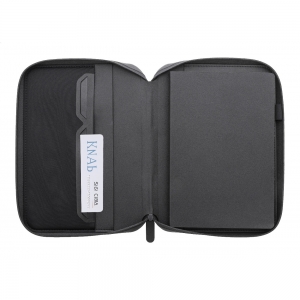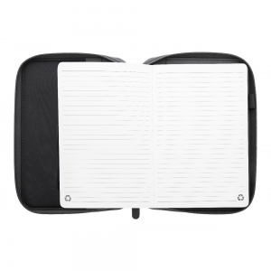 Artikel-Nr: AND800177-10Hochwertige Dokumentenmappe mit Reißverschluss aus recyceltem PU-Leder, inklusive liniertem Notizblock mit 64 Blättern aus Recyclingpapier. Mit mehreren Innentaschen für Karten und Dokumente. A5-Format.