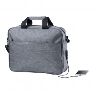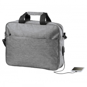 Artikel-Nr: AND721154-77Dokumententasche mit RFID-Ausleseschutz, gepolstertem Laptop- und Tabletfach (15" & 10"), gepolstertem Schultergurt und eingebautem USB-Anschluss für Powerbanks. Material: 300D Polyester.
