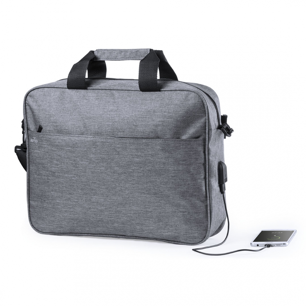 Artikel-Nr: KTO16216008000Sichere Dokumententasche mit urbanem Design aus robustem 300D Polyester. Innentasche mit fortschrittlicher RFID-Sicherheitstechnologie (Radio Frequency Identification), durch die die Daten von Karten und Geräten stets geschützt sind. Gepolsterte Griffe und Hauptfach mit Reißverschluss. Mit USB-Anschluss (Powerbank nicht inklusive) und gepolsterten Innenfächern für Laptop von bis zu 15 Zoll und Tablet von bis zu 10 Zoll. Verstellbarer Schultergurt mit Polsterung.