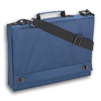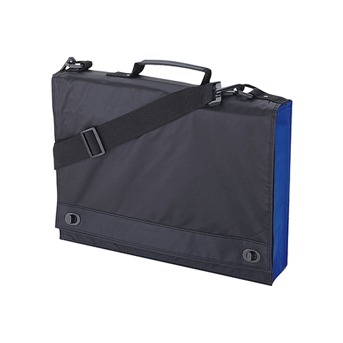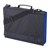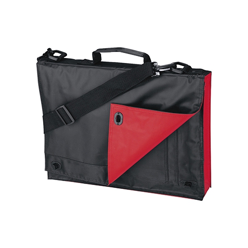 Dokumententasche mit Drehverschlüssen an der Frontklappe, darunter liegendem Organizer-Panel, verstellbarem Schultertragegurt und Tragegriff.
