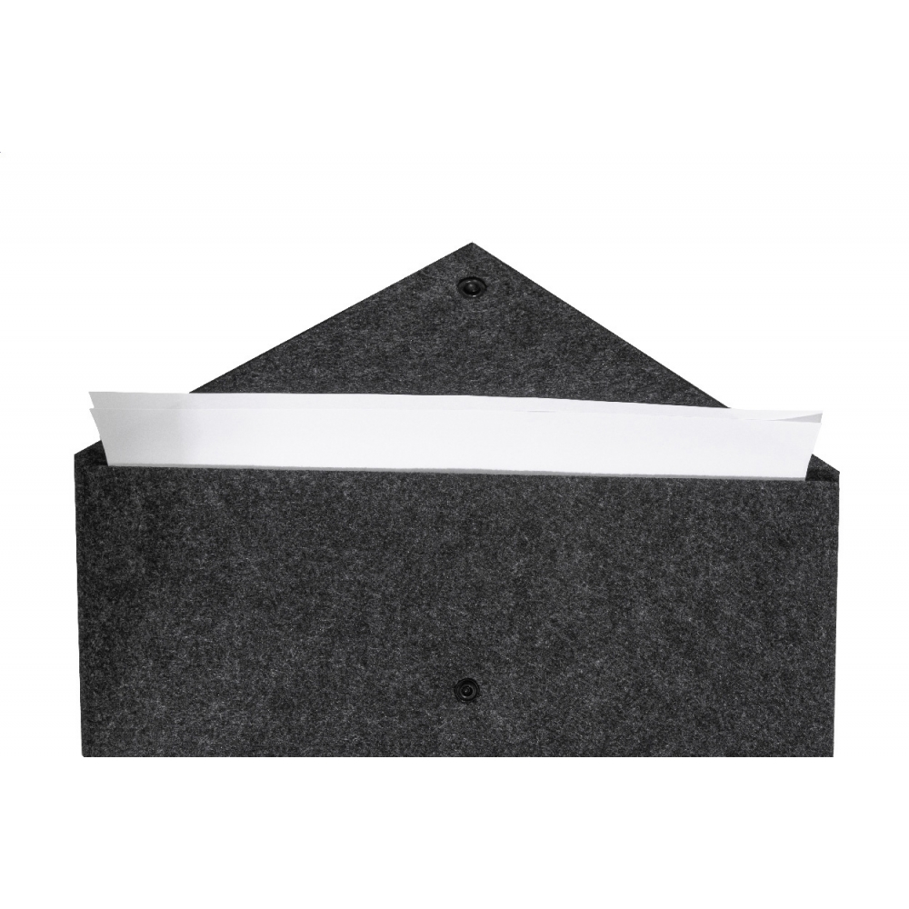 Artikel-Nr: AND800086-80Dokumenten- oder Laptoptasche aus RPET-Filz mit Druckknopfverschluss. Passend für Laptops bis 13 Zoll. Mit RPET-Label.